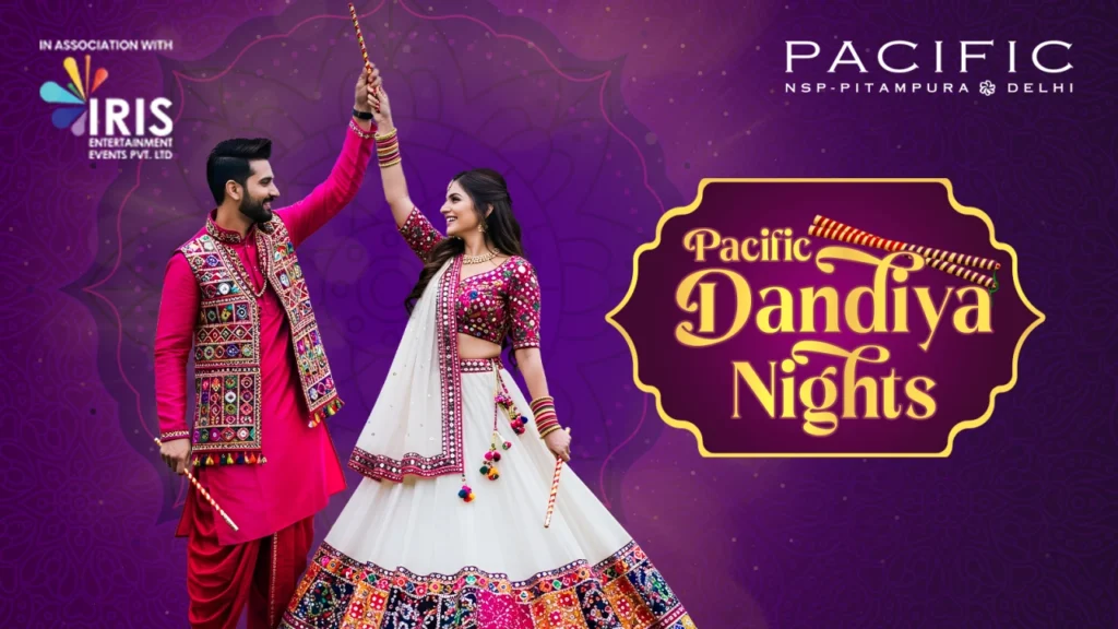 Experience Pitampura’s biggest rooftop Dandiya Festival with live percussions, DJs, and multiple food stalls. A unique combination of shopping and Garba fun.